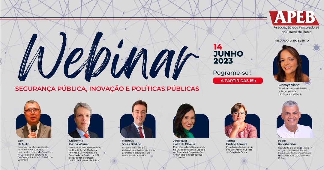 Aspectos diversos ligados à Segurança Pública, inovação e políticas públicas na área foram debatidos na webinar realizada pela APEB-BA, nesta