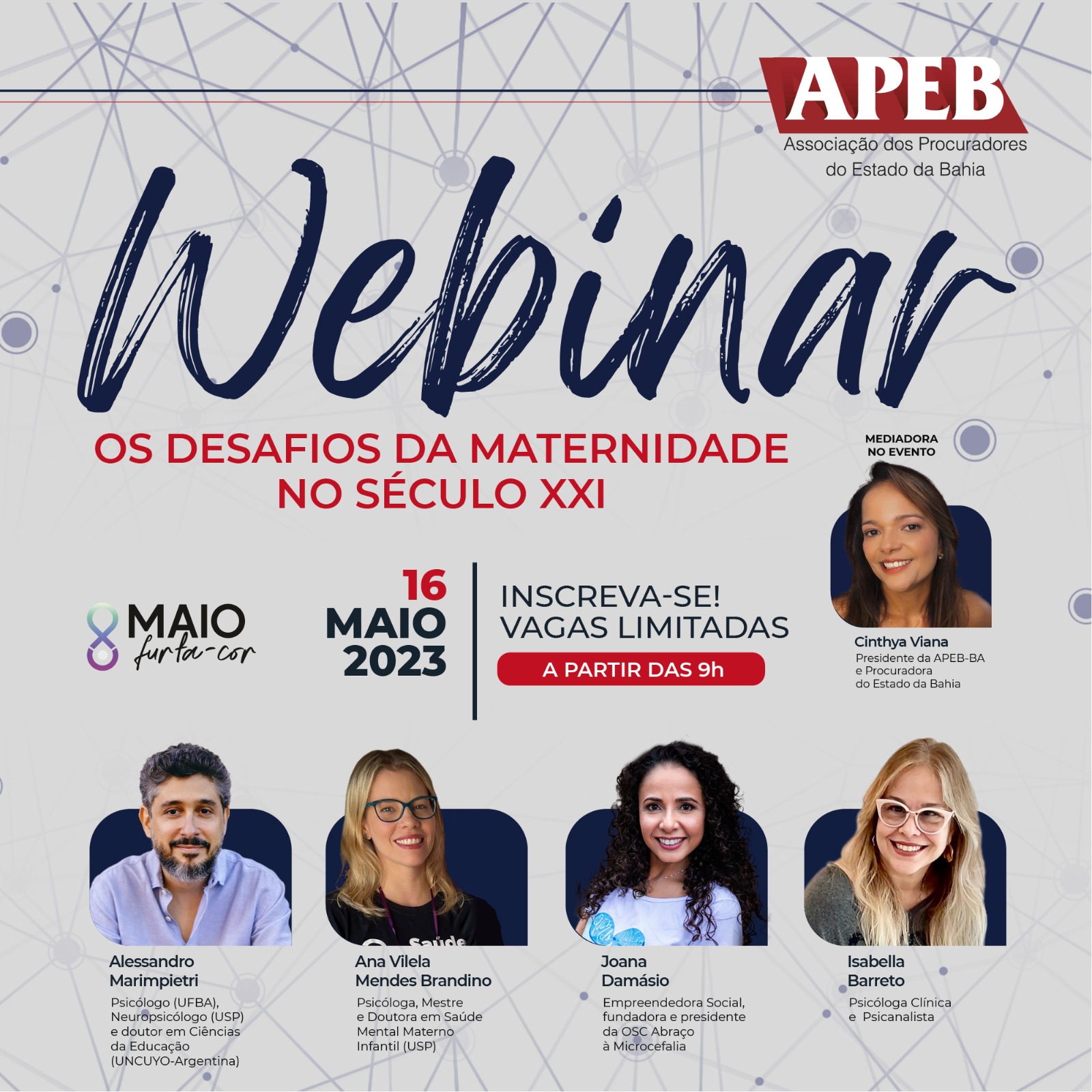 A APEB realiza nesta terça, 16 de maio, às 9h, o webinar "Os desafios da maternidade no século XXI".