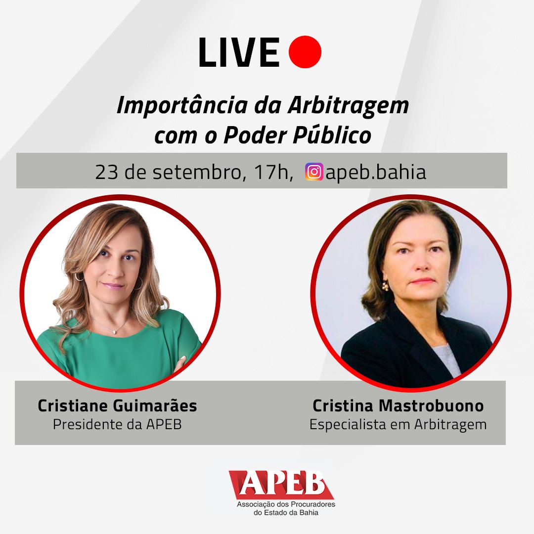 Em comemoração aos 25 anos de vigência da Lei de Arbitragem, a APEB promove nesta quinta-feira, 23 de setembro, às 17 horas, no canal do Instagram da Associaç&atil