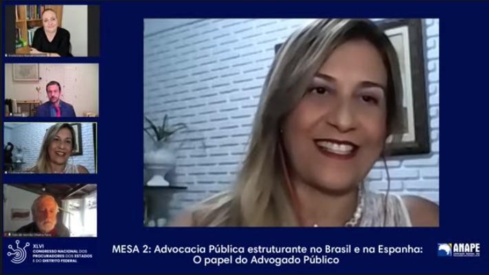 Abrindo a segunda mesa de debates do XLVI Congresso Nacional dos Procuradores dos Estados e do DF, a 2ª vice-presidente da ANAPE, Cristiane Santana Guimarães, recebeu a procuradora do E