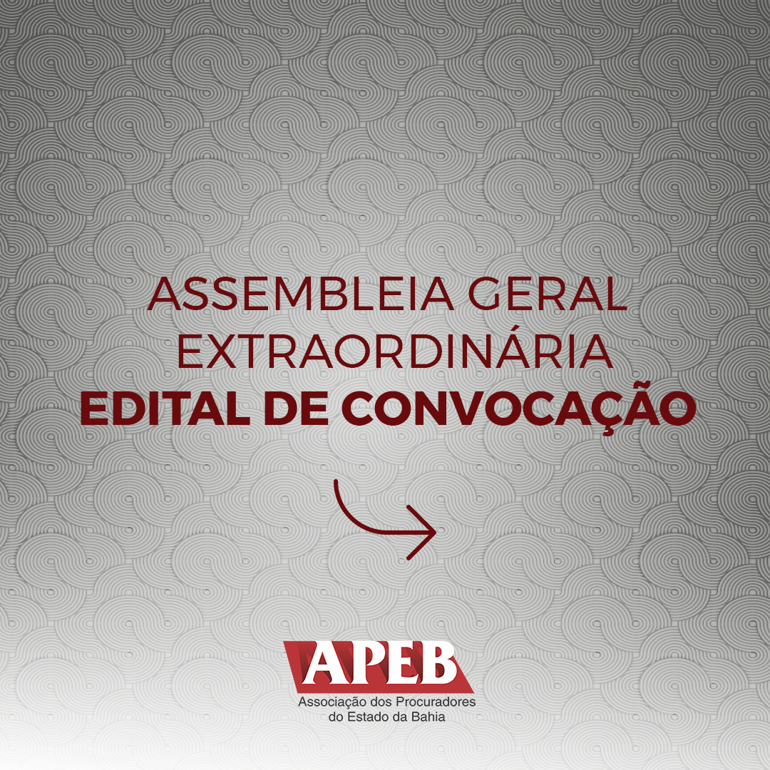 Ficam convocados os associados da APEB para a Assembleia Geral Extraordinária a ser realizada por videoconferência no dia 05 de novembro de 2020, às 14 horas, em primeira convoc