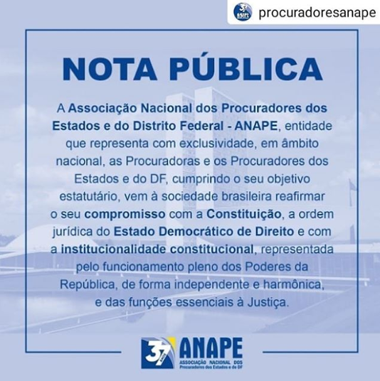 A Associação Nacional dos Procuradores dos Estados e do Distrito Federal - ANAPE, entidade que representa com exclusividade, em âmbito nacional, as Procuradoras e os Procuradore