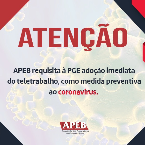 A APEB requereu, através de ofício enviado à Procuradoria Geral do Estado, a adoção imediata do teletrabalho, como medida preventiva ao Novo Coronavírus. A